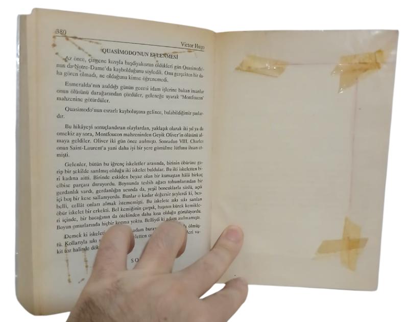 Dış kabı şeffaf jelatinle kaplanmıştır.Bu yüzden kapak iç kısımlarında,resimdeki gibi bant lekeleri oluşmuştur.Temiz durumdadır.