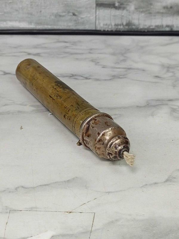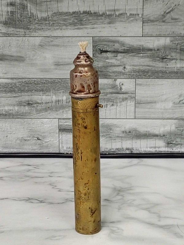 Muhteşem bronz ve gümüş işçiliğiyle üretilmiştir. O döneme ait nadirliği nedeniyle müze değerinde bir üründür. Ürün Detayları: Osmanlı dönemi işçiliğinin ve estetiğinin nadir bir örneği olan bu seyahat/cep lambası, dönemin askeri veya sivil elitinin kullanımı için tasarlanmış özel bir parçadır. Tasarım ve Şekil: Yaklaşık 18,5 cm uzunluğunda, silindirik gövdeli ve taşınabilir formdadır. Alt hazne, gazyağı veya alkol haznesi olarak işlev görür. Kapak ve Başlık: Üstteki düşük kaliteli gümüş dekoratif kapak, hem alevi korumak için rüzgar kalkanı görevi görür hem de estetik bir zenginlik sunar. İşçilik: Gövdedeki dikey oluklar ve kapaktaki karakteristik motifler, dönemin işçiliğini yansıtmaktadır. Durum: Yaşına göre oldukça iyi durumda. Zamanın doğal oksidasyonu (patina) korunmuş olup, nesneye tarihi bir derinlik katmaktadır. Orijinal fitil mekanizması mevcuttur ve tüm parçalar eksiksizdir (alt hazne, üst kapak ve fitil tutucu). Koleksiyon Değeri: Bu tür nesneler Osmanlı döneminde sadece aydınlatma araçları değil, aynı zamanda mühür mumu eritmek veya puro/sigara yakmak için masalarda kullanılan prestijli aksesuarlardı. Benzer ürünler genellikle Avrupa (Fransız/İngiliz) pazarı için üretiliyor ve Osmanlı topraklarında nadiren kullanılıyor veya yerel zanaatkarlar tarafından bu şekilde nadiren üretiliyordu.