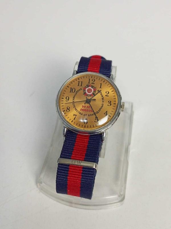 Açıklama: Rus saat endüstrisinin tarihsel temalı en anlamlı örneklerinden biri olan bu özel parça satışa sunulmuştur. Saat, Sovyetler Birliği'nin "Büyük Anayurt Savaşı" (II. Dünya Savaşı) zaferinin 50. yılı (1945-1995) anısına üretilmiştir. Saatin Öne Çıkan Özellikleri: Kadran Tasarımı: Kadranın merkezinde Sovyet "Zafer Nişanı" (Order of Victory) sembolü yer almaktadır. Alt kısımda kırmızı harflerle Rusça "50 Let Pobedi" (50 Yıllık Zafer) ibaresi bulunmaktadır. Anlamlı Yazılar: Kadranı çevreleyen Rusça yazıda "Kubanlıların minnettarından vatanın koruyucusuna" (Защитнику Отечества от благодарных Кубанцев) ibaresi yer almaktadır. Bu, saatin Kuban bölgesine özel veya oradaki gaziler için üretilmiş olabileceğini göstermektedir. Mekanizma ve Kondisyon: Klasik Rus saat mekanizmasına sahip, temiz ve bakımlı bir kondisyondadır. Camı ve kasası yaşına göre oldukça iyi durumdadır. Kordon: Saatin askeri ruhuna uygun olarak, lacivert-kırmızı çizgili modern ve şık bir NATO kordon ile kombinlenmiştir. Koleksiyon Değeri: Bu saat sadece bir zaman ölçer değil, aynı zamanda 1995 yılında sınırlı sayıda üretilmiş bir "hatıra objesi"dir. Özellikle Sovyet dönemi objelerine ve askeri saatlere ilgi duyan koleksiyonerler için eşsiz bir parçadır.