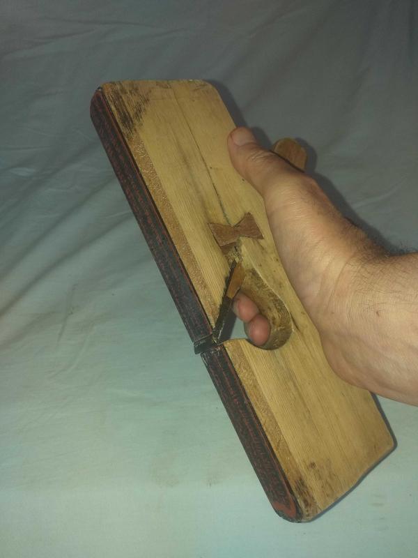 Muazzam patinesiyle güzel eskimiş ,döneminde kırılmış ve sahibi tarafından çok zekice ve büyük ustalıkla kırlangıç kuyruğu detayı uygulanarak tamir edilmiş, yarasıyla ender , ağaç yüzeyini keserek düzeltmekte kullanılan ahşap marangoz aleti... Marangoz el aleti , ethnografik sanat , ethnografic art , reprodüksiyon, reproduction, folk art...