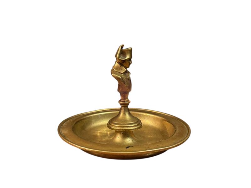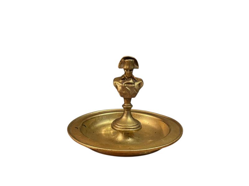 Napolyon görselli Avrupa pirinç kül tablası 13,5 cm çapında 10 cm boyunda başlıklı antika/koleksiyon objesi Avrupa menşe’lidir. 1950-1999 arası dönemine aittir.
