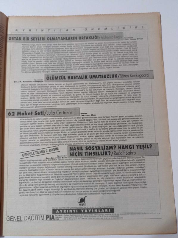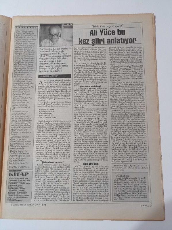Sayfa Boyutu: 27*38 cm Sayfa Sayısı: 20 Cumhuriyet Kitap Gazetesi 13 Mart 1997 Yıpranma, sararmalar, kupon kesiği ve yırtılmalar zamana bağlı olarak görülebilir