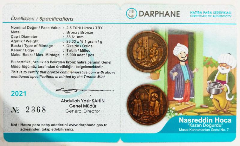 Nasreddin Hoca Serisi No:7 ((Kazan Doğurdu)) Hatıra Bronz Sertifikası.. #2021
