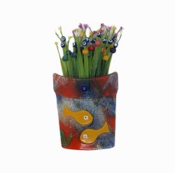 Nazar Boncuklu Balık Desenli Renkli Cam Saksı Duvar Süsü