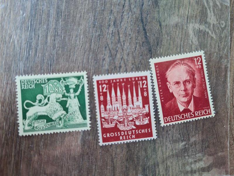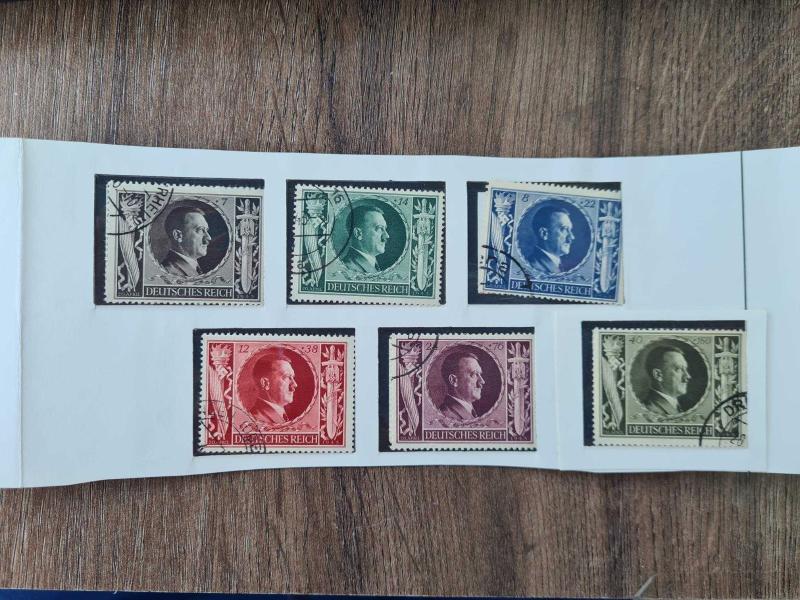 II. Dünya Savaşı dönemine ait, Nazi Almanyası kaynaklı 2 ayrı temada toplam 9 orijinal puldan oluşan koleksiyonluk set: 📌 1️⃣ Hitler Portre Serisi – 6’lı Damgalı Set (1941–1944) Deutsches Reich tarafından çıkarılmış en yaygın propaganda pul serisidir. 6 farklı renk ve değer: 3 Pf, 6 Pf, 8 Pf, 12+38 Pf, 12+76 Pf ve 40+160 Pf Tümü postada kullanılmış, temiz damgalı ve net portreli 40 Pfennig’lik yüksek değerli pul, serinin nadirleşen örneklerindendir 📌 2️⃣ Kültürel & Anma Temalı 3’lü Pul Seti – Mühürsüz (Çil) Deutsche Goldschmiedekunst – Alman kuyumculuk sanatı (yeşil) 800 Jahre Lübeck – Lübeck şehrinin 800. yılı (kırmızı) Peter Rosegger – Yazar ve doğa dostu portresi (kırmızı) Hepsi 12+8 Pfennig, sosyal katkı pullarıdır Mühürsüz / çil, koleksiyonluk kondisyon ⚠️ Bu ürün yalnızca tarihî belge ve filateli koleksiyonu amacıyla satışa sunulmuştur. Hiçbir siyasi, ideolojik veya propaganda amacı taşımaz.