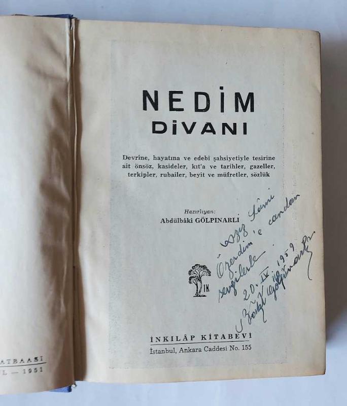 Nedim Divanı [İLK BASKI, İMZALI], Abdülbaki Gölpınarlı (Haz.) tarafından kaleme alınmıştır. Kitap 1951 yılında İnkılap Kitabevi tarafından [İstanbul] yayınlanmıştır. Sayfa bilgisi XL+470 s. olarak belirtilmiştir. Nedim Divanı [İLK BASKI, İMZALI] adlı eser Türkçe dilindedir.