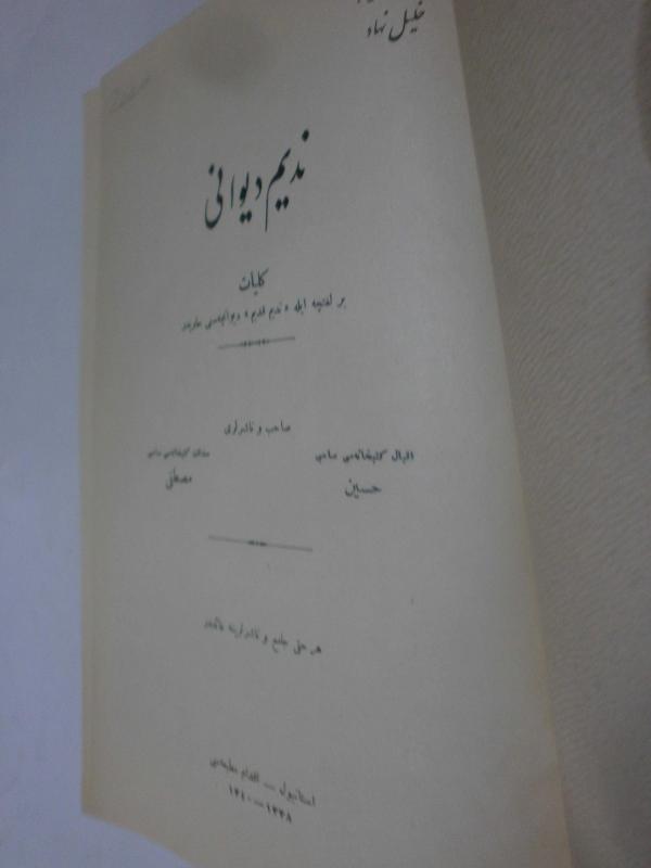 Nedim Divanı, Nedim tarafından kaleme alınmıştır. Kitap [Hicri: 1340] [Rûmi: 1338] yılında İkdam Matbaası tarafından [İstanbul] yayınlanmıştır. 374 sayfadır. Nedim Divanı adlı eser Osmanlıca dilindedir.
