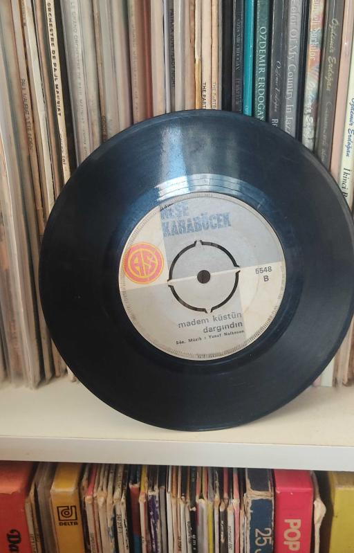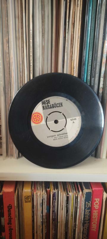 🎵 Neşe Karaböcek – Yorgun Gönüller / Madem Küstün Dargındın Yerli 45’lik plak, dönem baskı. Türk Sanat Müziği ve Pop tınılarının usta yorumcusu Neşe Karaböcek’ten, gönül yorgunluklarını ve sitem dolu aşk hikayelerini eşsiz sesiyle buluşturan nostaljik bir plak. 📀 Durum: 7/8 (Çok İyi) 🎶 Dinlemelik & koleksiyonluk NOT: Kapsızdır. (Kapaksızdır)