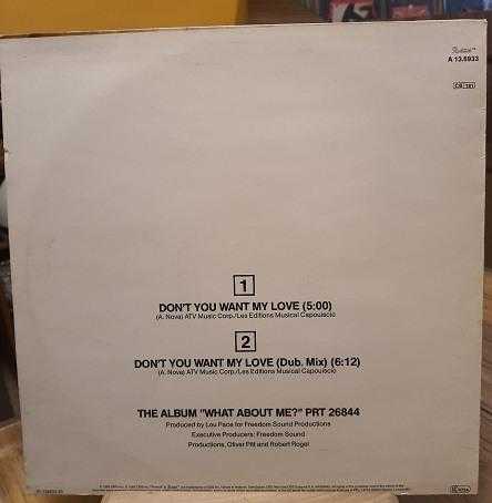 1985 Avrupa Baskı Kapak EXL. Plak EXL. A Don't You Want My Love 5:00 B Don't You Want My Love (Dub Mix)ne