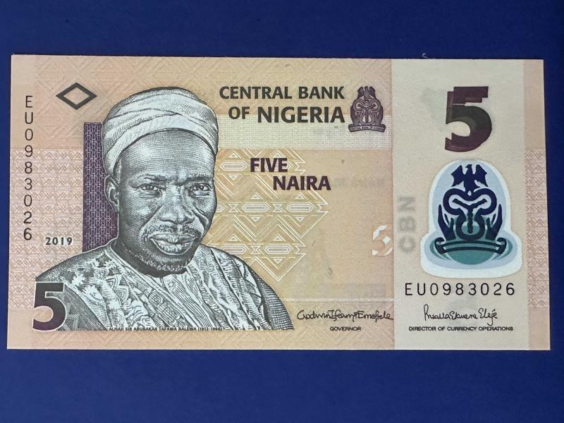 Nijerya 5 Naira 2019. Çil. Polimer. Tedavül.