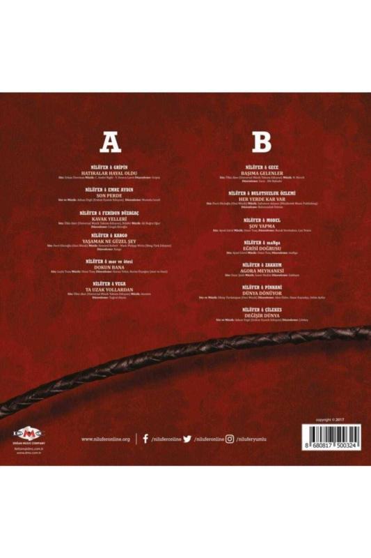 1; Nilüfer & Gripin – Hatıralar Hayal Oldu 2; Nilüfer & Gece – Başıma Gelenler 3; Nilüfer & Emre Aydın – Son Perde 4; Nilüfer & Bulutsuzluk Özlemi – Her Yerde Kar Var 5; Nilüfer & Feridun Düzağaç – Kavak Yelleri 6; Nilüfer & Kargo – Yaşamak Ne Güzel Şey 7; Nilüfer & Mor Ve Ötesi – Dokun Bana LP: 2 1; Nilüfer & Vega – Ta Uzak Yollardan 2; Nilüfer & Model – Şov Yapma 3; Nilüfer & Manga – Eğrisi Doğrusu 4; Nilüfer & Zakum – Agora Meyhanesi 5; Nilüfer & Pinhani – Dünya Dönüyor 6; Nilüfer & Çilekeş – Değişir Dünya; Marka: Osso Model Kodu: 183 Barkod: 8680817500324