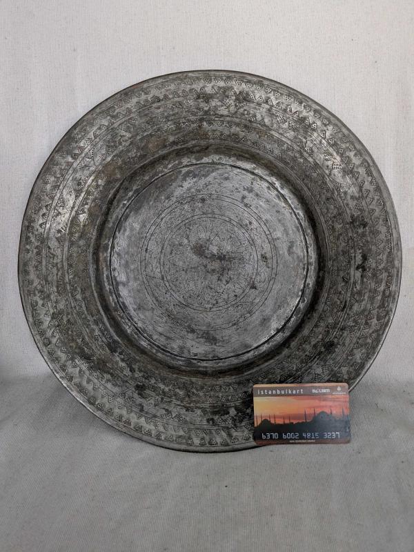 (No12) Osmanlı çok değşik yoğun kalem işçilikli lenger, kenarları kıvrımlı bükme, 35cm çapında, 910gr ağırlığında