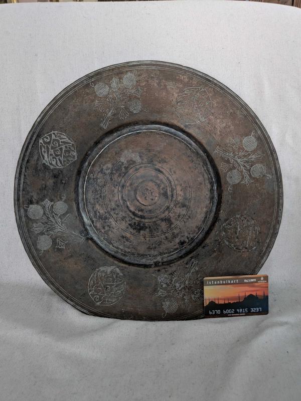 (No13) Osmanlı kalem işçilikli büyük boy lenger başlıklı antika/koleksiyon objesi Türkiye menşe’lidir. 1900 öncesi dönemine aittir.