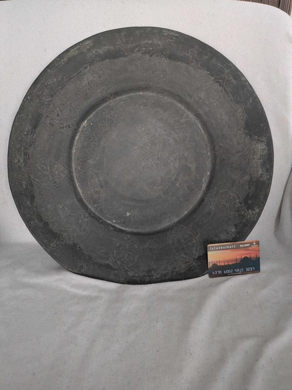 Osmanlı kallavi boyda kalem işçilikli kenarları kıvrımlı bükme lenger, 43cm çapında, 2560gr ağırlığında