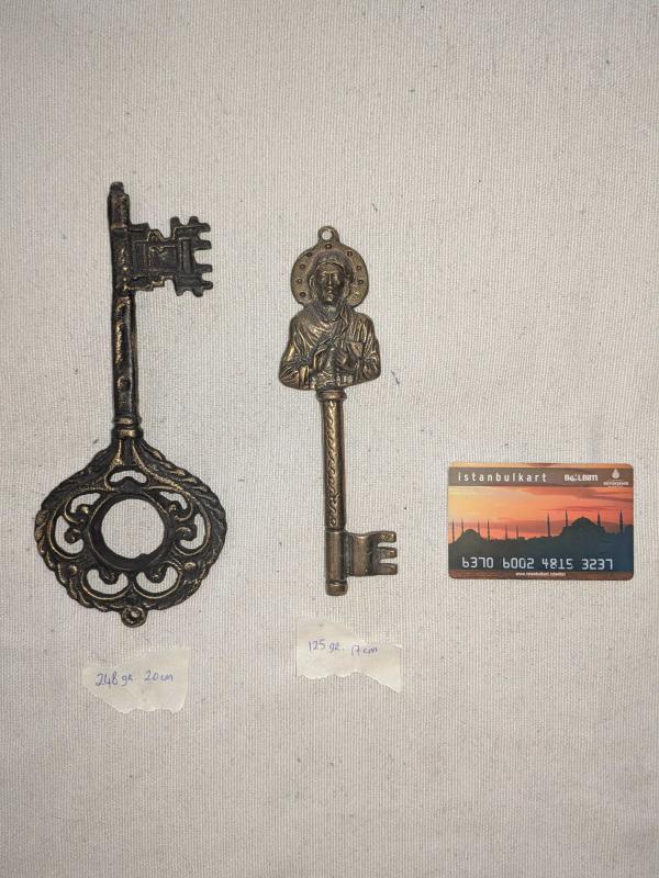 (No34) Pirinç Anahtar 2 Adet - 20cm olan 248gr ağırlığında, - 17cm olan 125gr ağırlığında,