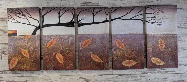 (No59) 60x30cm 5 Adet, bitişik dizildiğinde ölçüsü 60x150cm.dir. Yeni tip tuval üzerine karışık teknik olarak yapılmıştır. 5 adedin toplam satış fiyatıdır.