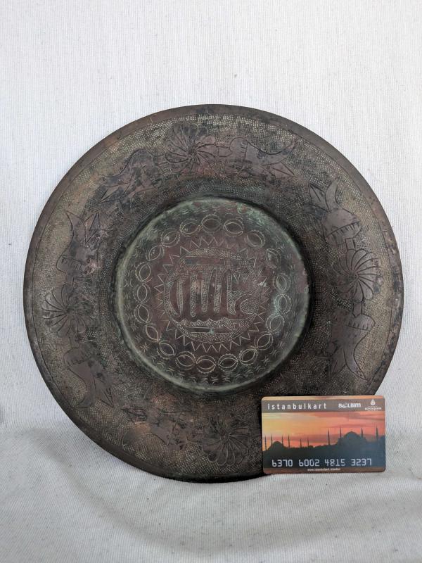 (No8) Osmanlı çok yoğun kalem işlemeli duvar tabağı başlıklı ürün, Antika-Koleksiyon, Hobi-Sanat > Antika > Antika Metal Objeler > Bakır kategorisinde İkinci El olarak satışa sunulmuştur.