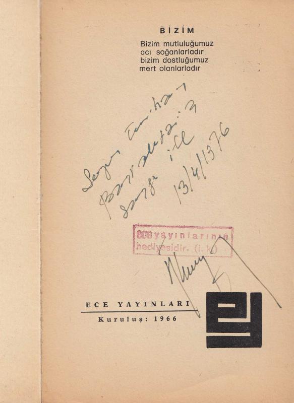 Yazarından ithaflı ve imzalı.
