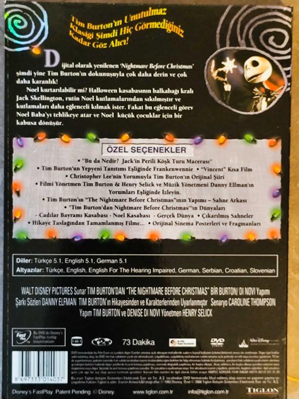 Noel Gecesi Kabusu/The Nightmare Before Christmas - 2 Disk Koleksiyon Versiyonu başlıklı ürün, Efemera, Müzik, Sinema > Sinema, Film, Dizi > DVD > Yabancı DVD kategorisi altında İkinci El olarak satılmaktadır.