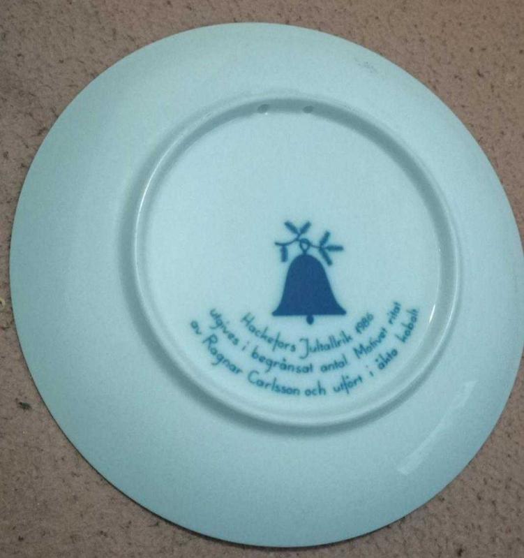 Noel Porselen Tabağı HACKEFORS Jultallrik 1986, İsveç Tabağı Julen, Ragnar Carlsson, başlıklı antika/koleksiyon objesi Avrupa menşe’lidir. 1980-1999 arası dönemine aittir.