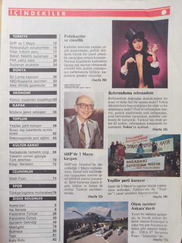 Nokta Dergisi - 10 Mayıs 1987 - Politika ve seks - Referandum soruşturması - Kibar hırsızın sonu - Bakan Kalemli suçlanıyor - Suçlanan avukatlar - Kömür madenleri boşaltılıyor - İktidarla gelen seksapel - Sınav dışı kalanlarda azınlık stresi - Dekorasyonda yeni eğilim - Karikatürde fantastik çizgi - Yabancı uzman gözüyle Türk sineması -