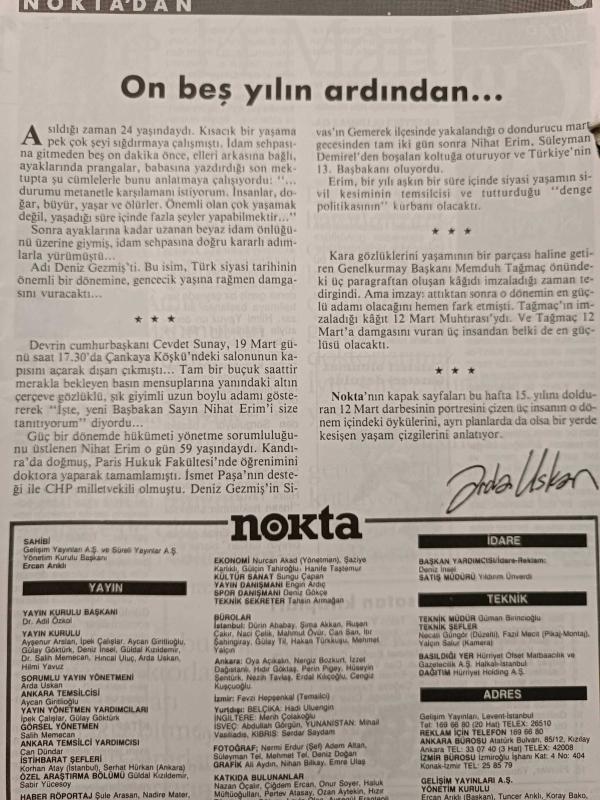 Nokta Dergisi - 16 Mart 1986 - Bir darbe, üç adam - Deniz Gezmiş - Memduh Tağmaç - Nihat Erim - SHP'de tartışmalı oturum - Solda kıpırdanma var - Ankara Koleji'nde dayak - Süleyman Demirel - Fransa'da genel seçim - Beyaz Saray'ın kadınları - Serbest bölgeler için ihale - Otobüste cinsel kâbus - Kadınlar dilekçesi - İngiltere'nin İlk renkli gazetesi -