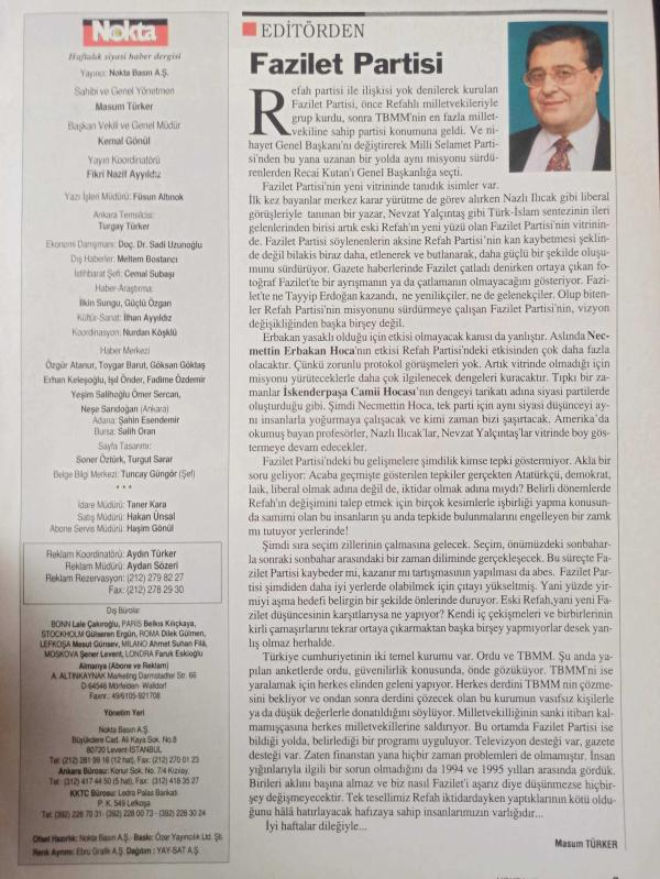 Nokta Dergisi - 17-23 Mayıs 1998 - Türk ve Rum Solu barışı tartıştı - Türkiye'nin dış politikası ve İsmail Cem - Demirel, komutanlara konferans verdi - Okuyan'ın kuzeni öldürüldü - Hükümet uzlaşma arayışında - Ağar'dan sabıkalıya silah ruhsatı - Ülkü Ocakları'na araştırma önergesi - Benazir Butto'ya tutuklama kararı - Çok yönlü bir yaşam hikayesi - adlı eser Türkçe dilindedir.