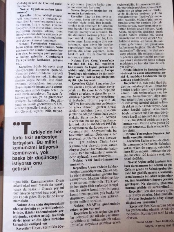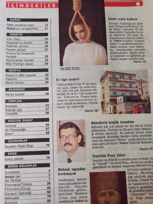 Nokta Dergisi - 17 Mayıs 1987 - Türkiye’de Bahailer-İktidar partisinden kalem kırmış hakimlere: İdam cezası kalksın - Van olayı - Kadınlar yürüyor - Ankara'da kooperatif kavgası - Apartmanda cezaevi - Milli piyango davası - Evren'in ABD ziyareti - Deniz turizmi - Ali Poyrazoğlu - Nurettin Paşa olayı - Garip şikeler - Keçeciler'le söyleşi - Berlin Duvarı - Günlerin getirdiği - adlı eser Türkçe dilindedir.