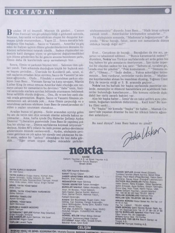 Nokta Dergisi - 20 Mart 1988 - Erlere tecavüz eden Teğmen - Süt şişeleri mikroplu - İzmir'de taksi cinayetleri - Muhsin Yazıcıoğlu - SSCB'de Ermenistan sorunu - Joan Baez - Güner Kuban - Robot Resimler - Hayvanlarda doğum kontrolü - Baskın Oran - Sinema Günleri - Beyazperdede satanizm -