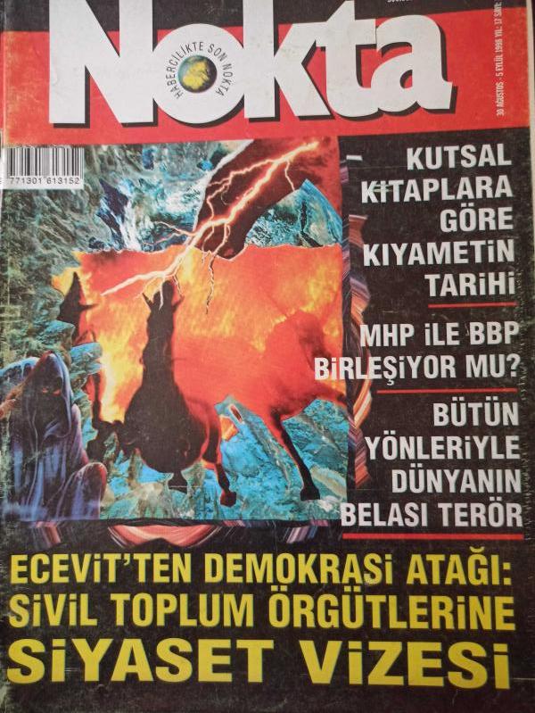 Nokta Dergisi - 30 Ağustos - 5 Eylül 1998 - Kutsal kitaplara göre kıyametin tarihi - MHP ile BBP birleşiyor mu? - Bütün yönleriyle dünyanın belası terör - Sivil toplum örgütlerine siyaset vizesi - Sendikalara siyaset vizesi - Türkiye'de de birçok Taliban var - Sportmen bir bankacı - Amacımız Globalleşme sürecinin içinde yer almak - Soğuk savaşın bedeli - Bir dünya belası, terör - adlı eser Türkçe dilindedir.