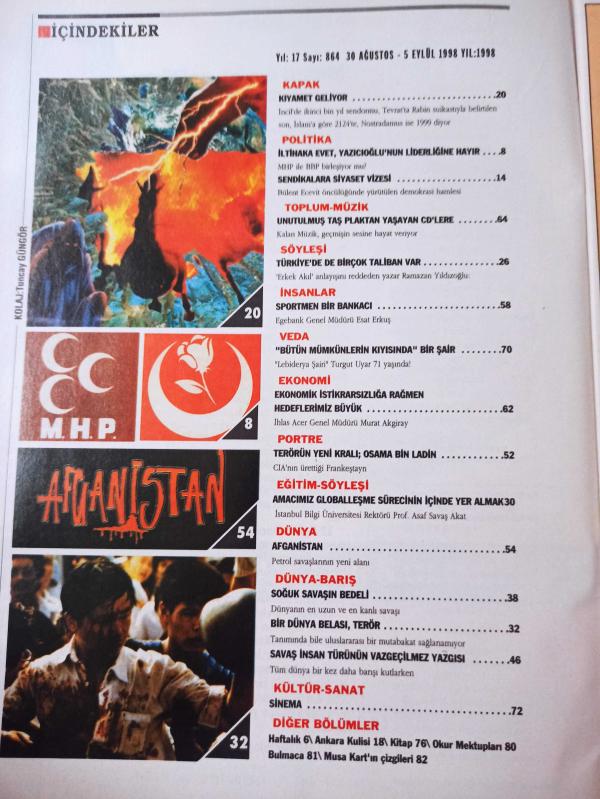 Nokta Dergisi - 30 Ağustos - 5 Eylül 1998 - Kutsal kitaplara göre kıyametin tarihi - MHP ile BBP birleşiyor mu? - Bütün yönleriyle dünyanın belası terör - Sivil toplum örgütlerine siyaset vizesi - Sendikalara siyaset vizesi - Türkiye'de de birçok Taliban var - Sportmen bir bankacı - Amacımız Globalleşme sürecinin içinde yer almak - Soğuk savaşın bedeli - Bir dünya belası, terör -