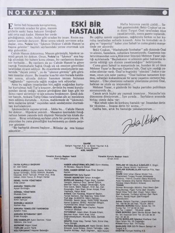 Nokta Dergisi - 4 Haziran 1989 - 7'den 70'e zayıflama çılgınlığı - Taraftarlar ve görüşleri - Resim piyasasında panik - Çin'de ayaklanma - Kemal Derinkök - Yarım kalan bir film - Şahların şahı - Fonda'nın uzun yürüyüşü - Bush'un ilk sınavı: Panama - Dr. Cahide'ye suçlamalar - Kafaoğlu'nun bir çiftliği var - ittifakçıların yeni stratejisi - B.B. şimdi hayvanları seviyor - adlı eser, Kitap > Süreli Yayınlar > Dergiler > Siyaset kategorisinde İkinci El olarak satıştadır.