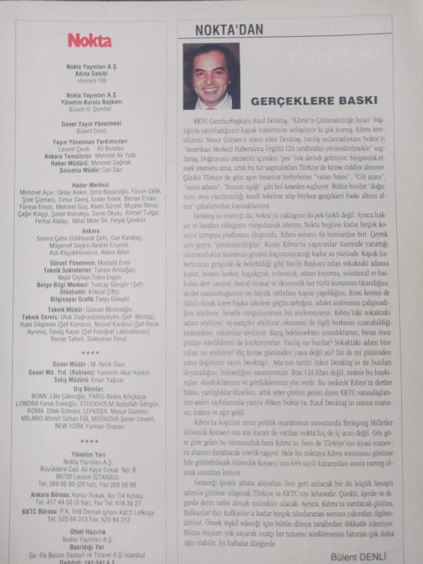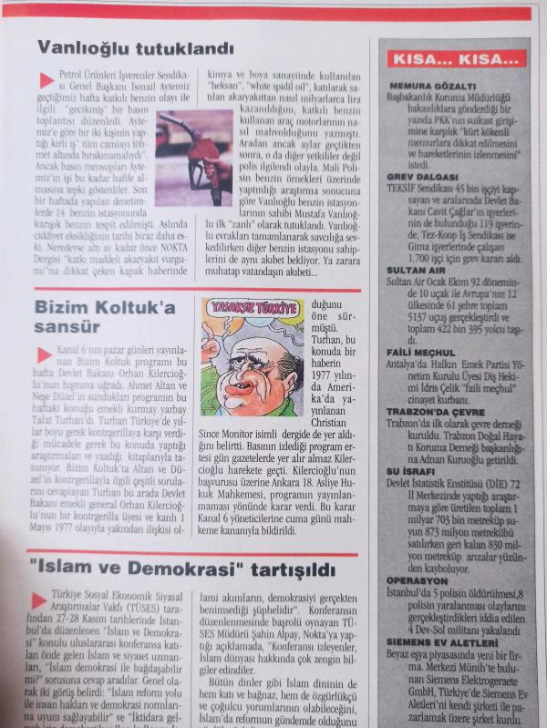 Nokta Dergisi - 6-12 Aralık 1992 - ANAP'ta değişim kavgası - Moskova'da kongre kavgaları - Ölmeyen aşkın sırrı - Değişik bir objektiften Mesut Yılmaz - Turgut Özal - Politikada Komplo Teorileri - Çok partili, tek görüşlü düzen - Bir zamanlar bir ANAP vardı - Rus Ayısı uyumuyor - Türkiye modeli fazla Avrupai - Kıbrıs'ta zor dönemeç - Küspeden akaryakıt - adlı eser Türkçe dilindedir.
