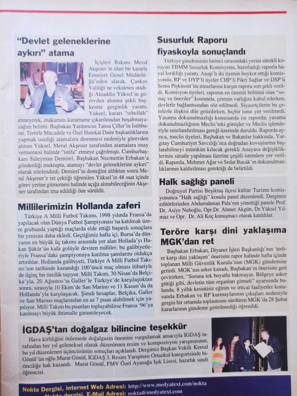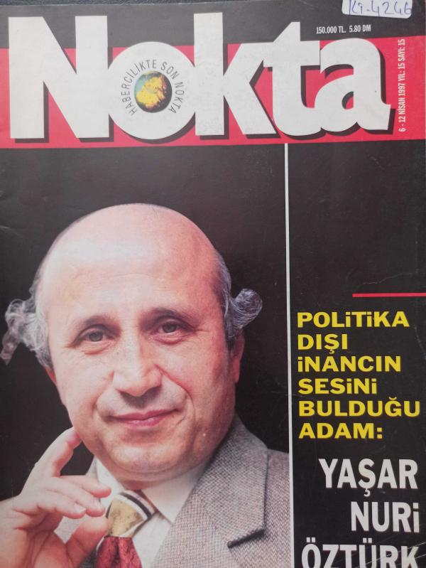 Nokta Dergisi - 6-12 Nisan 1997 - Politika dışı inancın sesini bulduğu adam: Yaşar Nuri Öztürk - MHP erken seçim istiyor - Siyasal ahlaka sözleşme metni - Türkiye'nin demokrasi sorunu - Hasreti prangalar eskitiyor - Toplu intiharlar yılı 2000 - Kadın ve lastik - Ateş topundan sanat eserine - Ortadoğu barışı tehlikede - Görünmeyen gizli vergi, enflasyon - adlı eser Türkçe dilindedir.