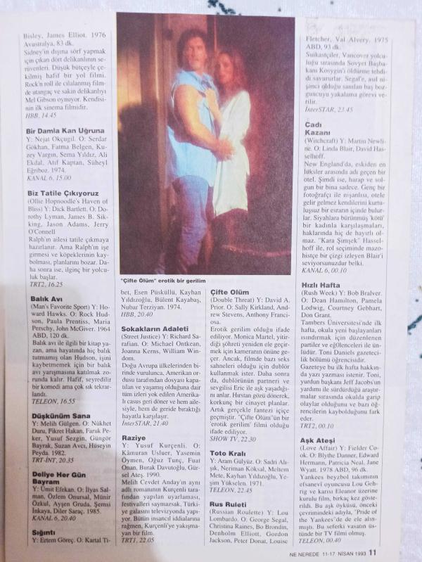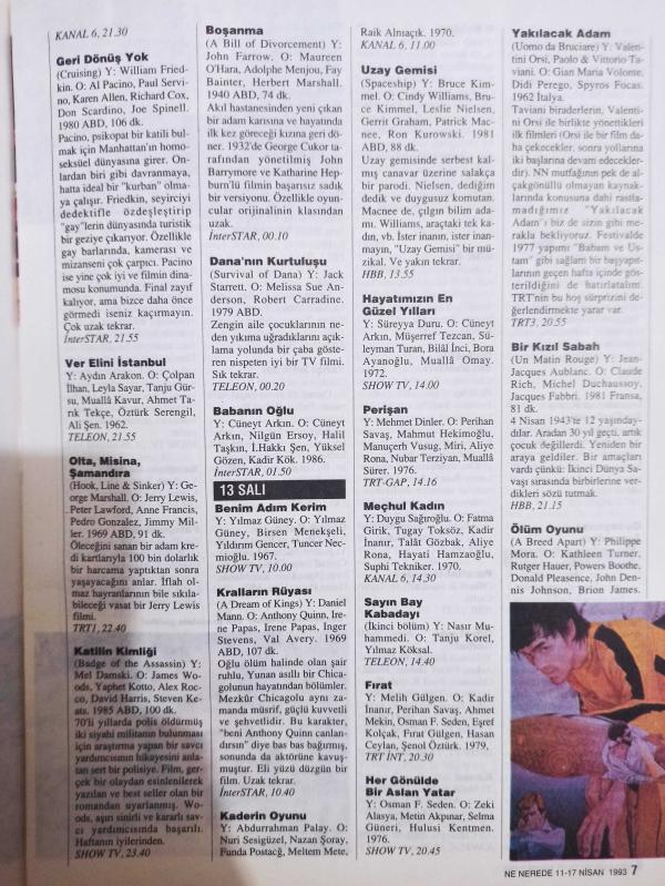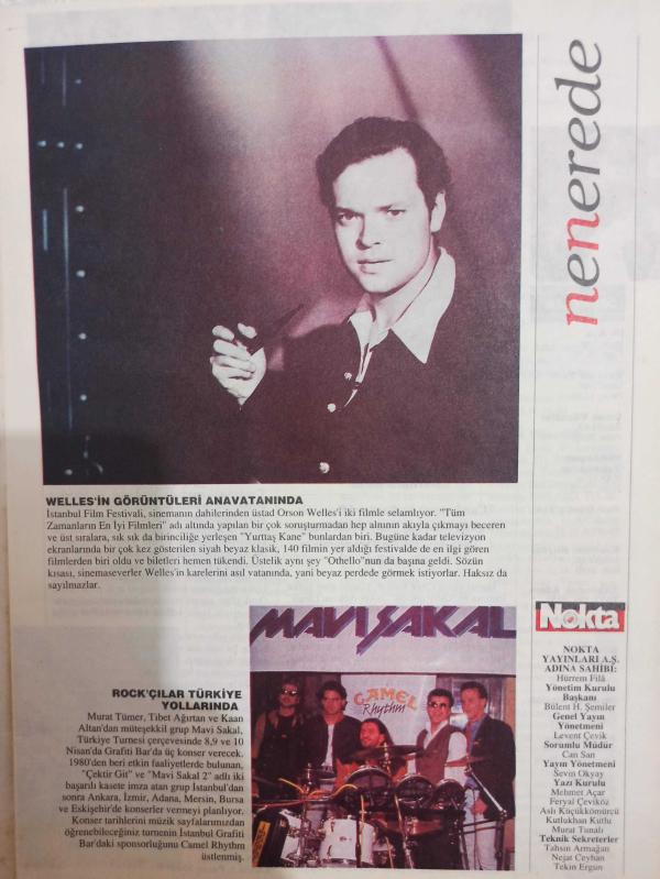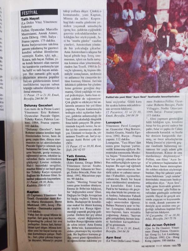 Nokta Nenerede Dergisi - 11-17 Nisan 1993 - Kapat Gözlerimi gösterimde - Mavi Sakal Anadolu'yu rocklayacak - Festivalin ikinci haftası için NN tavsiyeleri - Almanya'dan sıkı bir solist geliyor: Tülay - Danny De Vito - Pascale Ogier - Ara Güler - Clive Barker - Federico Fellini - Özer Kabaş -