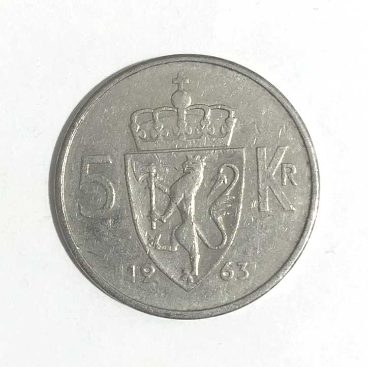 Norveç 5 Kron 1963. Fotoğraftaki ürün gönderilecektir.
