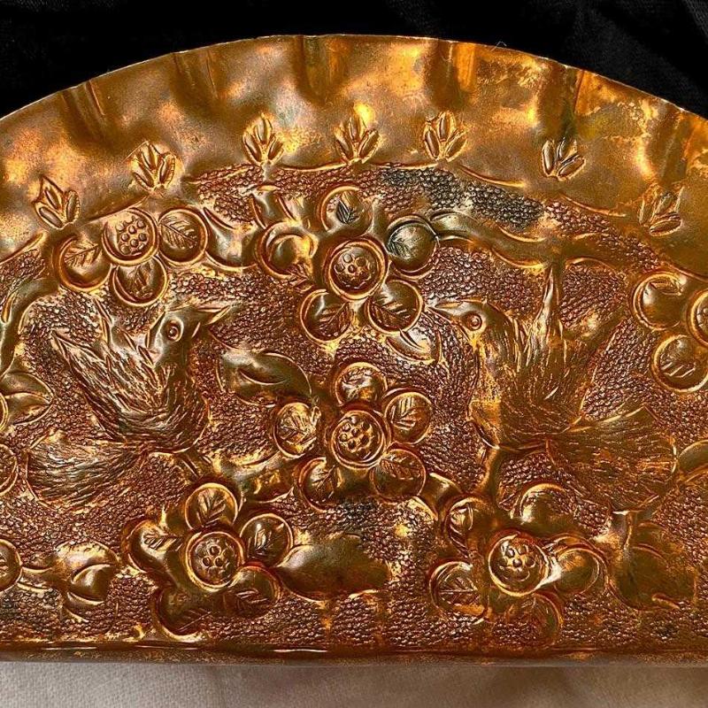 Bir başka nostaljik metal peçetelik; Dövme bakırdan, zarif kuş ve çiçek kabartmalı peçetelik. Peçeteliğin her iki yüzünde kabartma baskılı çiçekler ve kuş çifti yer alıyor. 16 cm uzunluğundaki bakır peçetelik yaşına göre iyi durumda, herhangi bir kırık, çatlak vs yoktur. 16x8 cm 110 gr