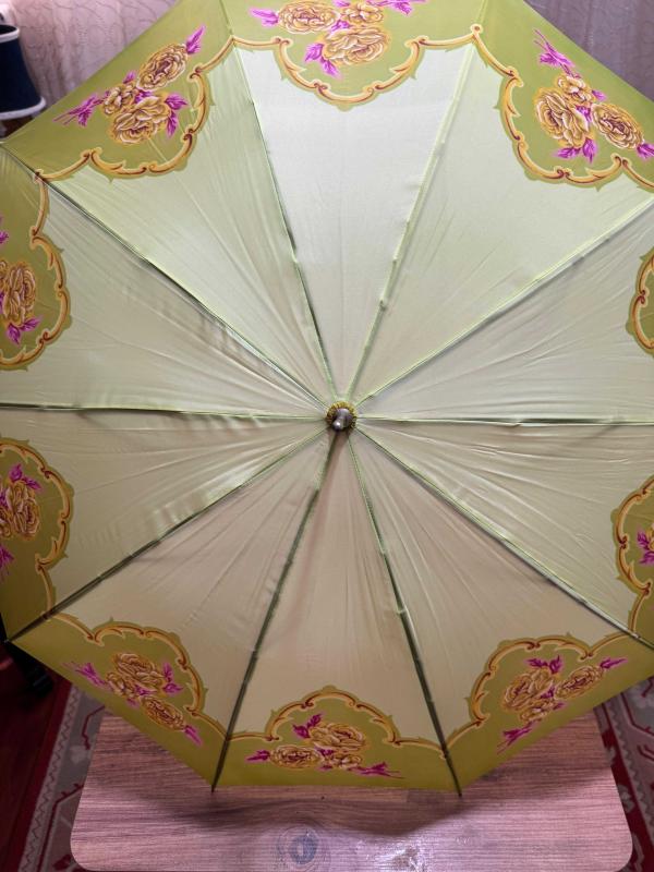 Nostaljik Tasarım Vintage Şemsiye - Tertemiz Göz alıcı fıstık yeşili rengi ve zarif gül desenleriyle koleksiyonluk bir parça. Hem günlük kullanım hem de dekoratif amaçlı harika bir aksesuar. başlıklı ürün, Antika-Koleksiyon, Hobi-Sanat > Antika kategorisinde İkinci El olarak satışa sunulmuştur.