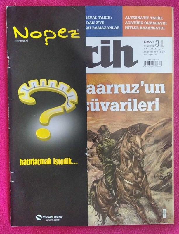 Kitap 2011 yılında yayınlanmıştır. 102 sayfadır. Ntv Tarih Dergisi Sayı 31 (Ağustos 2011) Büyük Taarruz'un Büyük Süvarileri, Alternatif Tarih, Taşralı Bir Kadının Sıradışı MEktupları adlı eser Türkçe dilindedir.