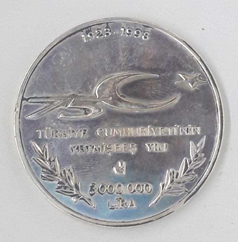 Nümismatik - Cumhuriyetin 75 Yılı için basılan 3.000.000 Lira Atatürk'ün Öğretmenlere Vecizesi Bulunan Gümüş Darphane Basım Para, en son 2 ay önce güncellenmiştir.