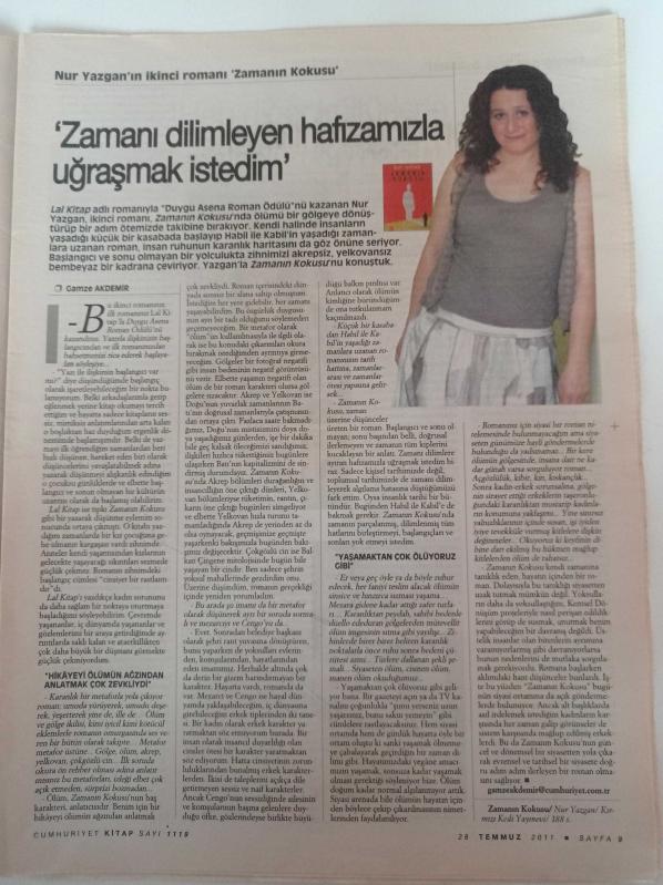 Nur Yazgan'ın İkinci Romanı Zamanın Kokusu - Duygu Asena Roman Ödülü - Charles Bukowski - Ayarsız Ayar Vericiden Ölmeden Gömülenlere- Gürol Sen - Anadolu Topraklarında Mozaik - Cumhuriyet Kitap adlı eser Türkçe dilindedir.