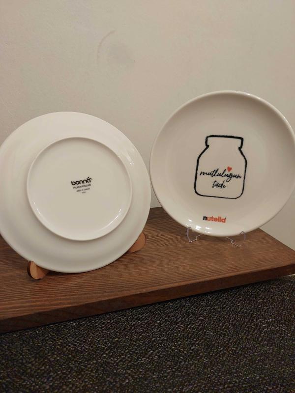 Üzerinde 'mutluluğun tadı' yazan ve ikonik Nutella kavanozu deseni bulunan iki adet beyaz servis tabağı. Kahvaltı sofralarına veya sunumlara şık bir dokunuş katar.Çıtlamaya karşı garantili ve Birinci sınıf Premium Porselendir.19 Cm Çapındadır.Kendi orijinal kutusunda gönderilecektir.Bulaşık makinesinde güvenle yıkanabilir.Özenle paketlenecektir.Diğer ilânlarımı incelemeyi unutmayınız.