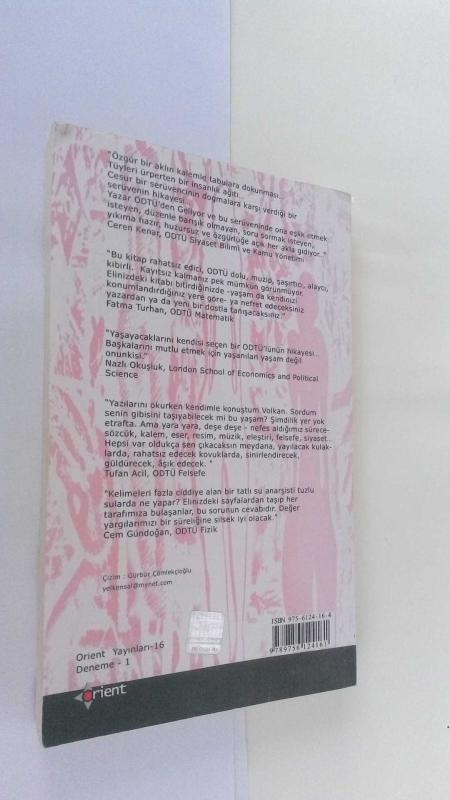 50. Kuruluş Yıldönümünü kutlayan Orta Doğu Teknik Üniversitesi'nin, "öğrenci gözü"nden yazılmış bir kitabı hiç olmuş muydu bilinmez; amma velakin, "ODTÜ'den Geliyorum" bu yolda bir hoş geldiniz makasıdır. Yırtılın! ODTü Genç Yazarlar Topluluğu'ndan Volkan Ertit, kelimelerini nakşederken, yalın mı yalın, duru mu duru bir dil kullanıyor. Diyor ki: Kendine saklarsan kahraman olamazsın ki!" Kahraman olmakla bir derdi olmayan bir öğrenciden, su gibi akıp giden, gecenize-şarabınıza dost olacak bir kitap ODTÜ'den Geliyorum. Lakin içinizdeki kahramanı fena halde uyandırabilir; öğrencilik hayatınızdan kareleri gözünüzün önüne getirmekle kalmayıp, sizin de bir iddia sahibi olmanızı körükleyebilir. bu kitap. "deneme" türünde kaleme alınmış olsa dahi, size bir şey iddia etmez ama kendi içinde dinamik sesler, "iç"ten iddialar ve iç sesler barındırır; "orada" olduğunuzu hissedeceksiniz. Orta Doğu Teknik Üniversitesi'nin bir "Orta Doğu" okulundan çok Orta Dünya Teknik Üniversitesi olduğunu içselleştireceksiniz. Öğrencilik koridorlarından geçerken, başka bir öğrencinin zihninde "huzurlu" bir konuk olarak bulacaksınız kendinizi. Bir "öğrenci evi tadında", kısa kısa, yarım yamalak, düşe kalka, bata çıka hikayeleri buradaki denemeler. Denemeden öğrenemezsiniz oyunun kurallarını. Savruk, aşık, samimi, içten, tutun(a)mayan ve dert sahibi bir kitap ODTÜ'den Geliyorum. Öyle ki, dışarıda da ODTÜ'lü olduğu için "yabancı"laşan bir anlatıcısı var. İsyan eden. Haydi öyleyse durma; sıkılmadan dökül, dökül ve oku bir solukta. Yastığının altında, bisikletinin eğerinde, dolabının derinliklerinde, çantanın diplerinde saklasan da bu kitabı; dokusunun ahengi gereği, yağmur yağıyorsa şemsiye olarak da kullanmaktan da sakınmayacaksın. İstersen yak ve küllerini yazarına yolla, istersen yırt ve uçak uçur ODTÜ Devrim Stadyumu'ndan aşağı. Hiçbir