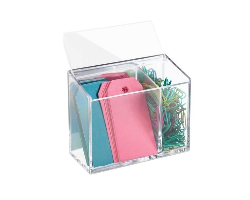 Kendinden yapışkanlı kırtasiye düzenleyicidir..Kapaklı,2 bölmeli bir üründür.Şeffaf renkli ürün,akrilik malzemelidir. Boyu 12,7cm,eni 6,5 cm,yüksekliği 10,2 cm,dir.Görseldeki aksesuarlar ürüne dahil değildir. Arkasındaki filmi çıkarttıktan sonra istediğiniz temiz ve düz bir bölgeye yapıştırabilirsiniz,Kalemlerinizi ve her türlü kırtasiye malzemelerinizi düzenlemenize yardımcı şık bir üründür.