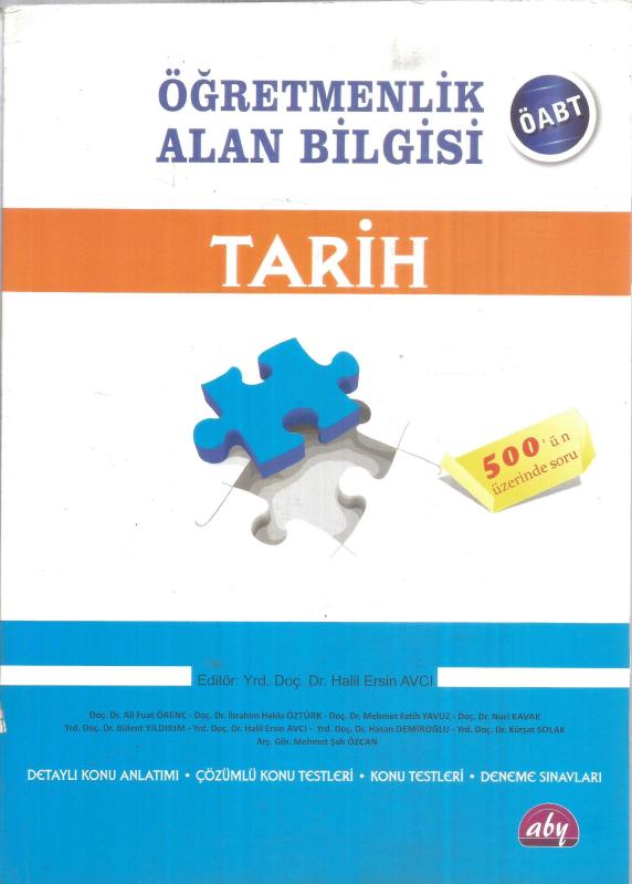 ÖĞRETMENLİK ALAN BİLGİSİ - TARİH KONU ANLATIM (DETAYLI KONU ANLATIMI, ÇÖZÜMLÜ KONU TESTLERİ, DENEME SINAVLARI, 500'ÜN ÜZERİNDE SORU), KOMİSYON tarafından kaleme alınmıştır. Eser YRD. DOÇ. DR. HALİL ERSİN AVCI editörlüğünde hazırlanmıştır. Kitap 2014 yılında ABY - ALAN BİLGİSİ YAYINLARI tarafından [ANKARA] yayınlanmıştır. 322 sayfadır. ÖĞRETMENLİK ALAN BİLGİSİ - TARİH KONU ANLATIM (DETAYLI KONU ANLATIMI, ÇÖZÜMLÜ KONU TESTLERİ, DENEME SINAVLARI, 500'ÜN ÜZERİNDE SORU) adlı eser Türkçe dilindedir.