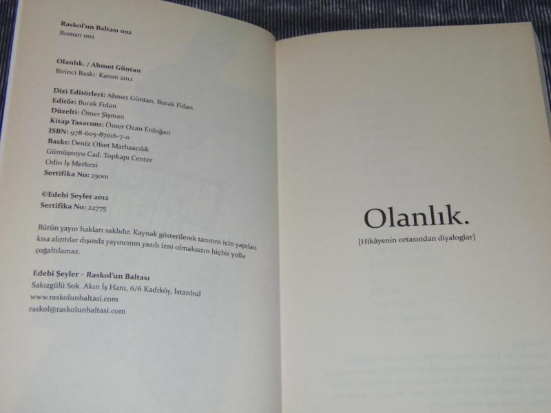 OLANLIK.(Hikayenin Ortasından Diyaloglar)-AHMET GÜNTAN-EDEBİ ŞEYLER YAYINLARI-181 SAYFA-İLK BASKI-SIFIRAYARINDA KİTAP. KİTAPLIK:61