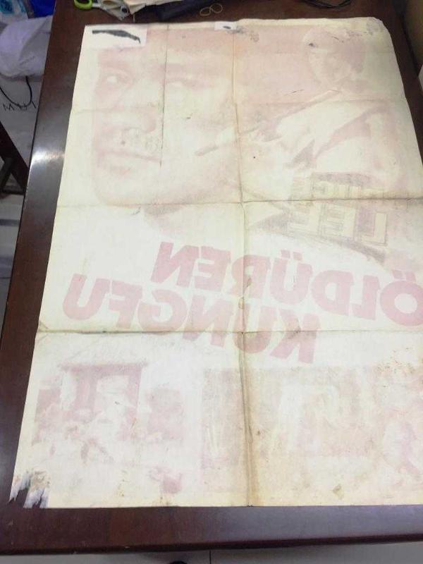 Sattığımız afiş / posterler dönemine ait orijinal ürünlerdir. Fotoğraflarda kondisyonları görebilirsiniz., Kondisyonlar temiz durumdadır. Aksi bir durum olduğunda ilave fotoğraf ve bilgi yer alacaktır. Kondisyon: Fotoğraflarda görüldüğü gibi, bazı bölgelerde küçük yırtılmalar ve hafif yıpranmalar vardır.