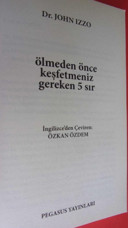 ÖLMEDEN ÖNCE KEŞFETMENİZ GEREKEN 5 SIR, Dr. JOHN IZZO tarafından kaleme alınmıştır. Kitap 2008 yılında PEGASUS YAYINLARI tarafından [isatanbul] yayınlanmıştır. 184 sayfadır. ÖLMEDEN ÖNCE KEŞFETMENİZ GEREKEN 5 SIR adlı eser Türkçe dilindedir.