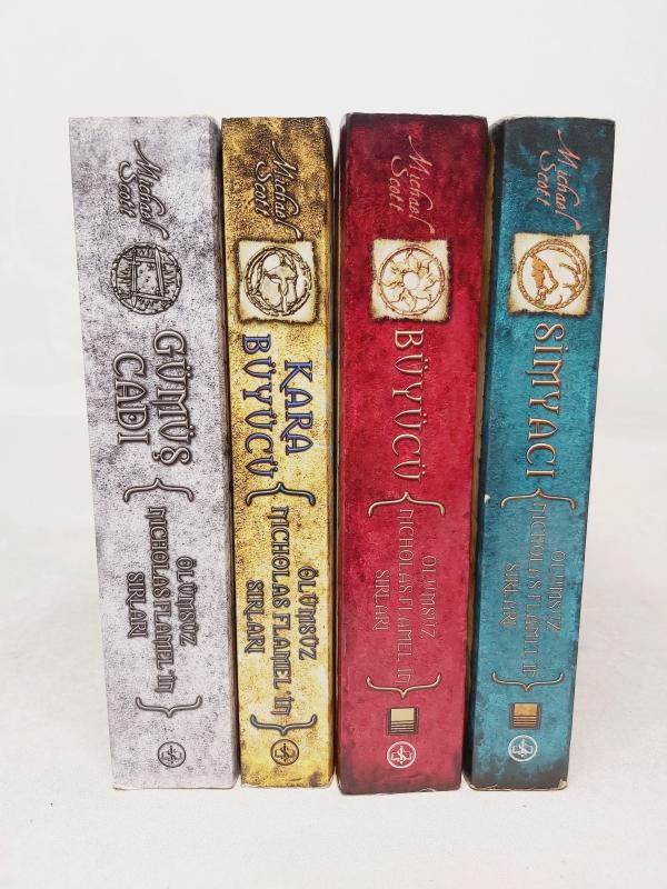 ÖLÜMSÜZ NICHOLAS FLAMEL'İN SIRLARI - SİMYACI / BÜYÜCÜ / KARA BÜYÜCÜ / GÜMÜŞ CADI 4 KİTAP, MİCHAEL SCOTT tarafından kaleme alınmıştır. Kitap 2015 yılında İŞ BANKASI KÜLTÜR YAY tarafından [İSTANBUL] yayınlanmıştır. Bu baskının çevirisi FİLİZ EMRE tarafından yapılmıştır. Sayfa bilgisi 4 KİTAP olarak belirtilmiştir. ÖLÜMSÜZ NICHOLAS FLAMEL'İN SIRLARI - SİMYACI / BÜYÜCÜ / KARA BÜYÜCÜ / GÜMÜŞ CADI 4 KİTAP adlı eser Türkçe dilindedir.