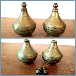 OMENİV'DEN GERÇEK ANTİKA OSMANLI ORİJİNAL BİR ÇİFT BERBER SULUĞU KOLONYA GÜL SUYU ŞİŞESİ SOM PİRİNÇ
